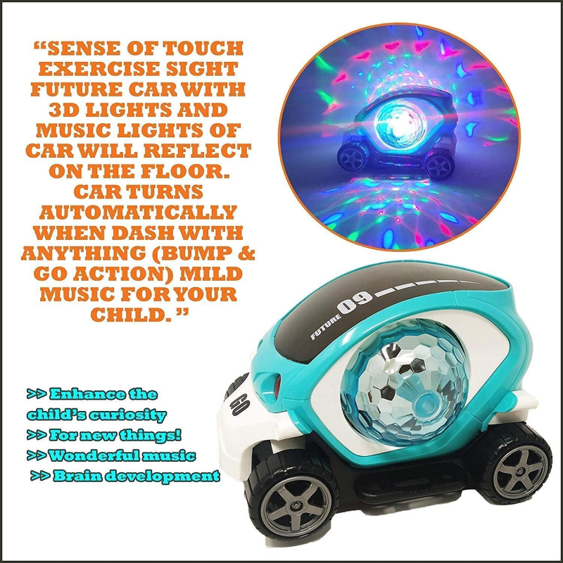 • ROTATES 360 DEGREE Car Bump and Go Toy with 3D Lights, Dancing Toy, Battery Operated Toy - ( battery not included )Assorted Color