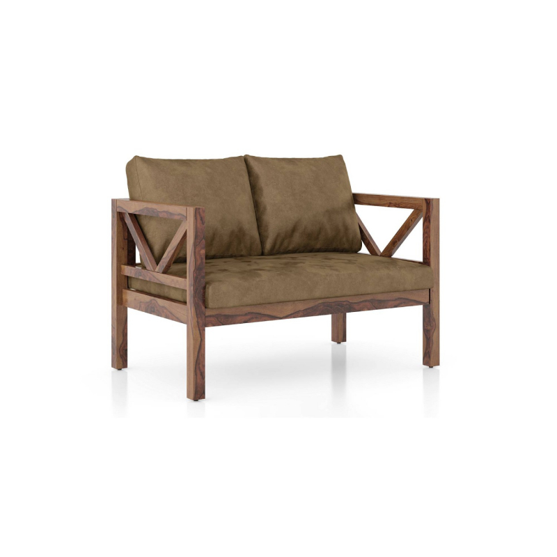 Alden Wooden Sofa -Finish- Teak (Peanut Brown Velvet)