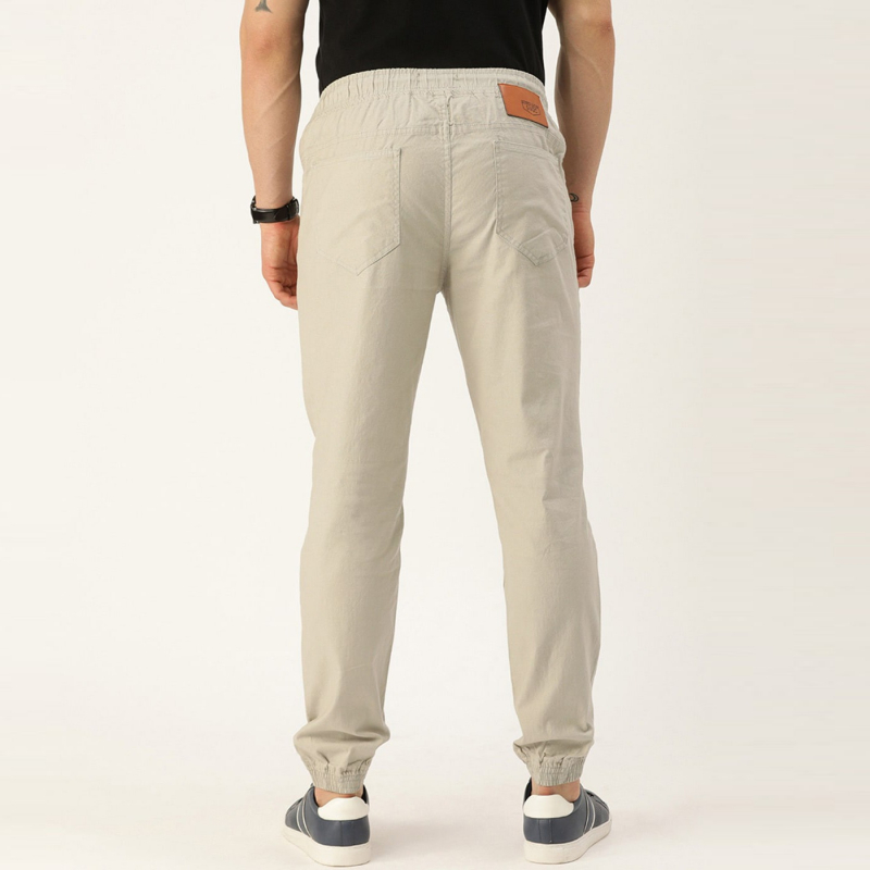 بنطال رياضي أبيض صلب متوسط الارتفاع، برباط تضييق للإغلاق، أربعة جيوب