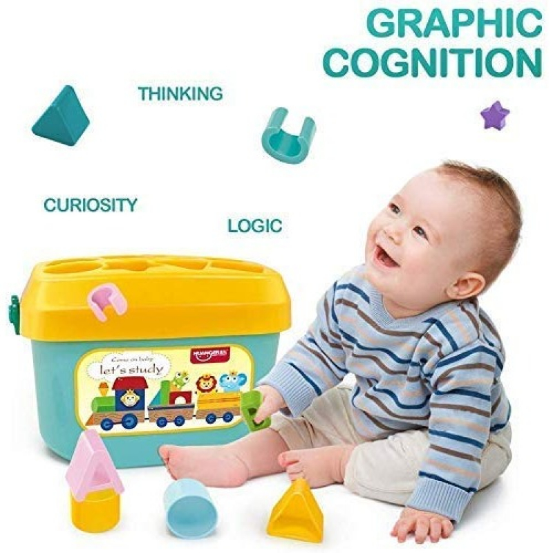 • Perfect interactive educational toy for for 1 year old and up; SHAPE SORTER BOX TOY: It comes with 16 shaped multiple color blocks.