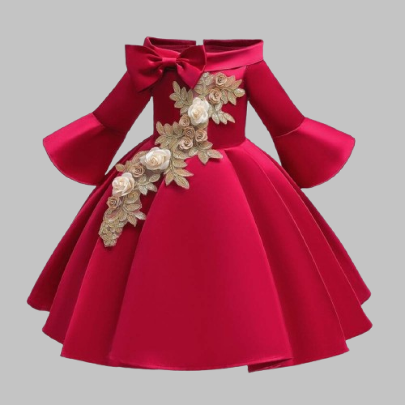 This Floral And Bow Applique Bell Sleeves Dress from Hopscotch is a must-have!
