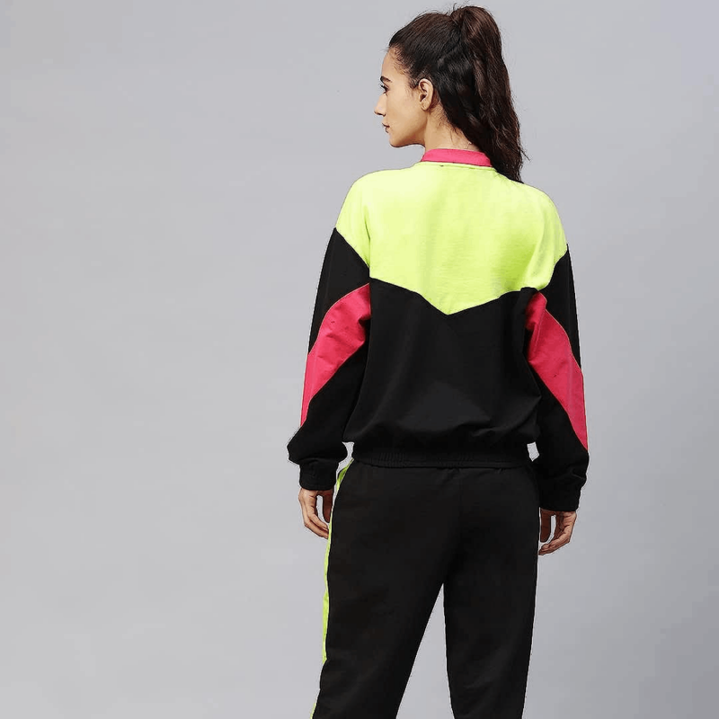 Black & Pink Colourblocked Track Suit