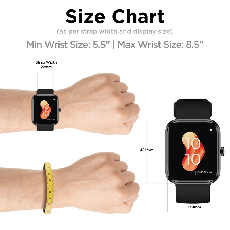 • Screen Size-;1.69" big square color LCD display with a round dial features a complete capacitive touch experience to let you take control, effortlessly.