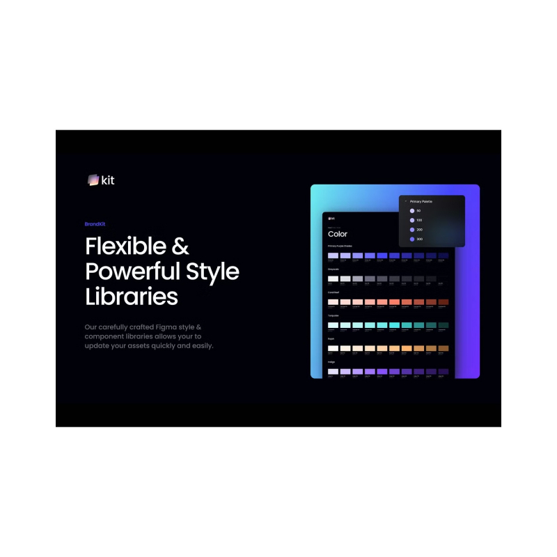 BrandKit is the most powerful brand design system available for Figma! This System gives you a beautiful platform to easily manage all of your brand assets in a single Figma file, export them to publishable Brand Wiki’s and Brand Books and also provides brand templates and tool like social media and email kits.