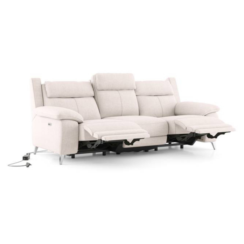 Emila Fabric Three Seater Motorized Recliner In Cream Colour