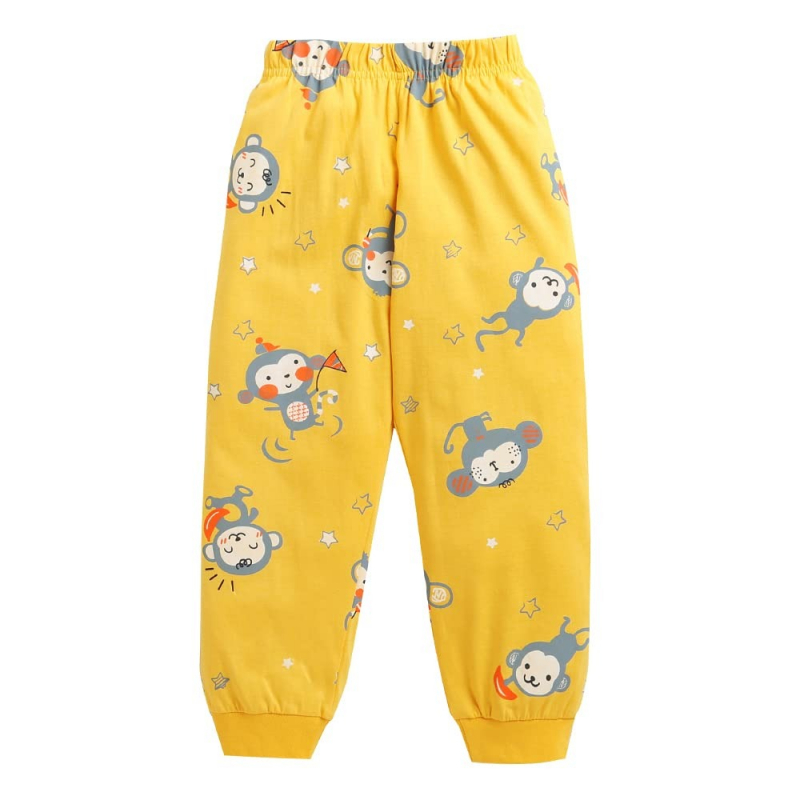 Hopscotch Boys Cotton All-Over Print Top and Pajama Set in Yellow Color