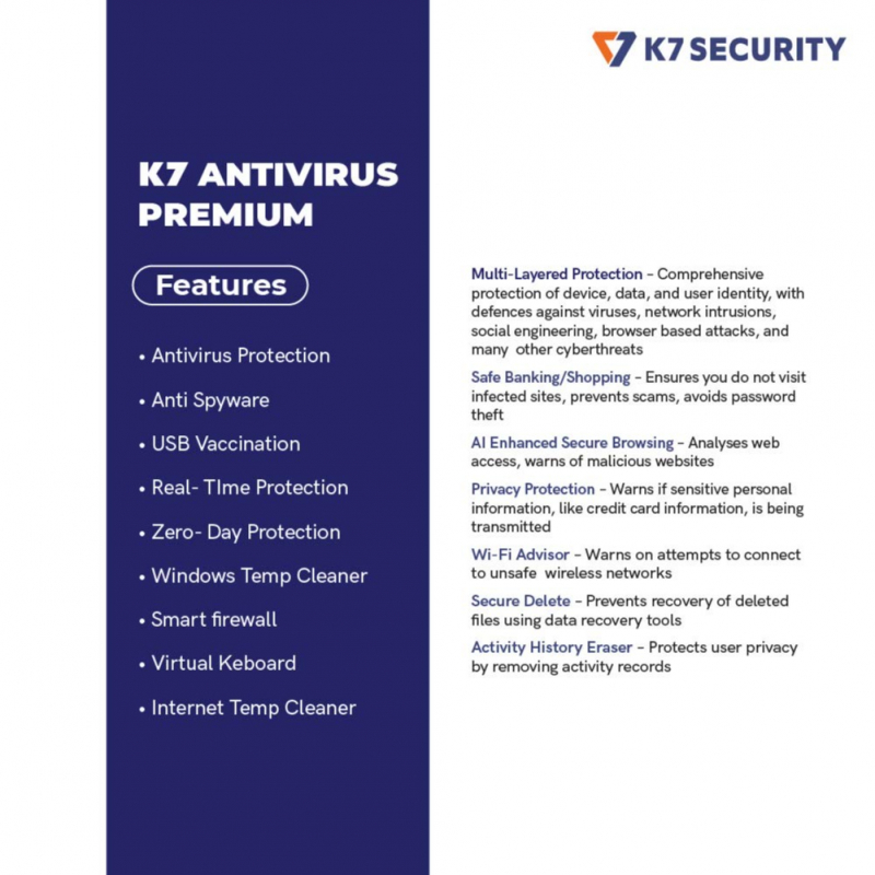 K7 Antivirus Premium- 1 User, 1 Year (Email Delivery in 2 hours - No CD)