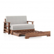 • Mix it up! The Mahim compact sofa cum bed is great at making the best of both worlds. Not only does it gorgeously combine wood and upholstery, it also turns from sofa to bed in just a few moves. So you can enjoy your binge-watching in better comfort.