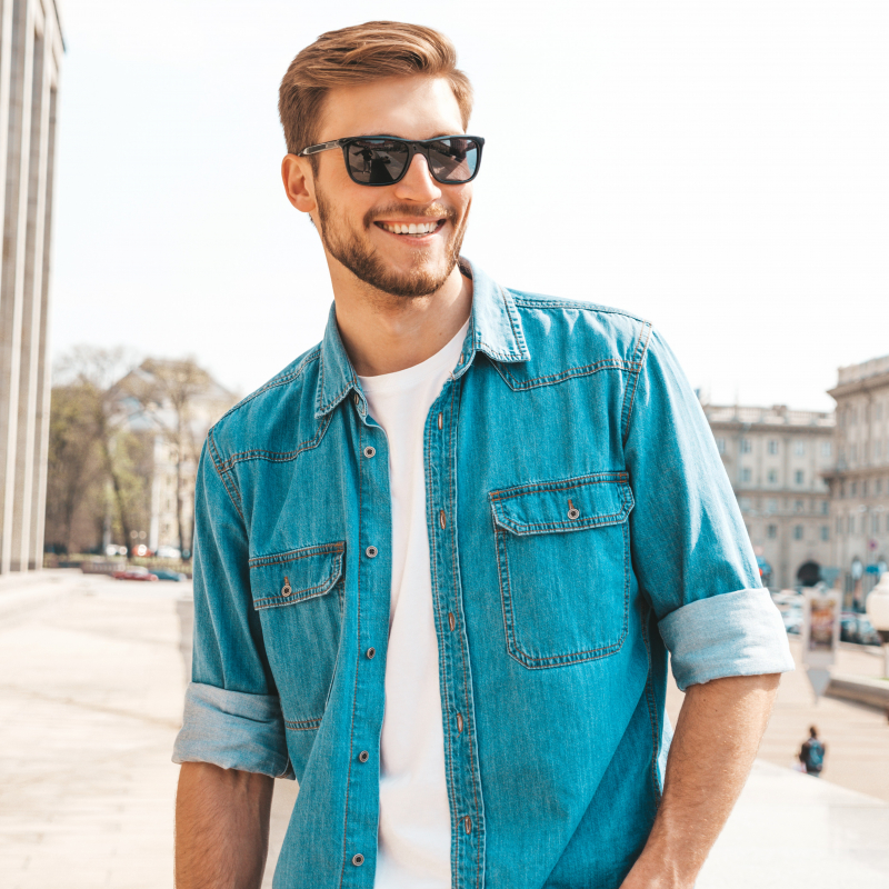 Blue solid opaque Casual shirt ,has a spread collar, button placket, 2 flap pocket, long regular sleeves, curved hem