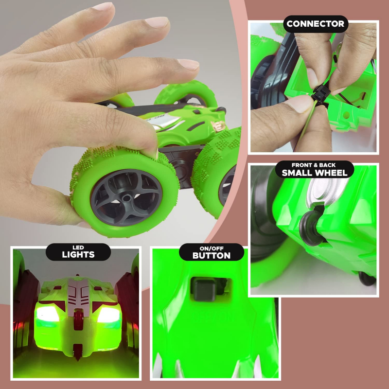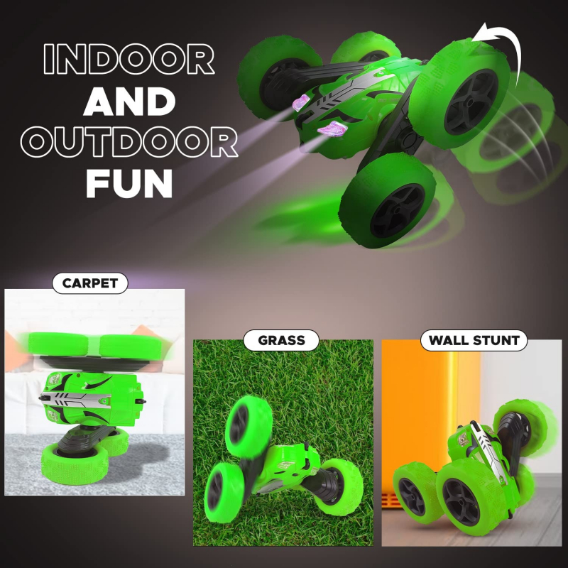 • 360° ROTATING STUNT: Double sides running, moving forward, backward, turning left, right, 360 degree tumbling flip for different playing experience on this electric remote control stunt car. You can control the rc cars for kids in any direction with its remote controller.