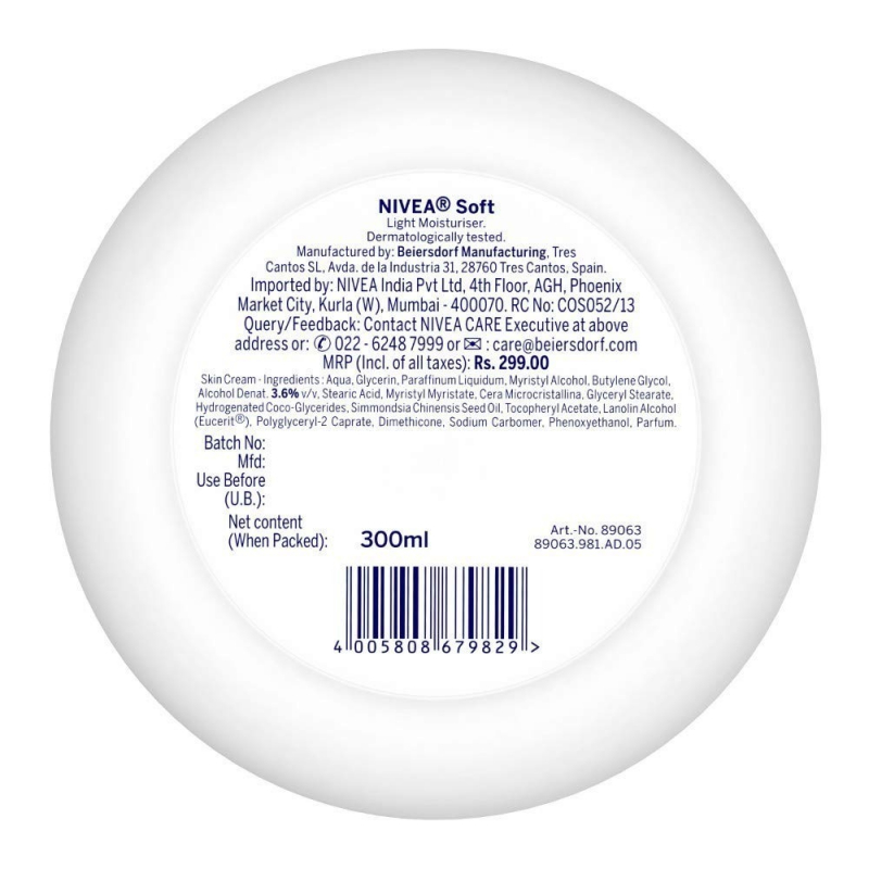 • Use it on your dry hands and chapped feet during the chilled winter days to obtain great results. You can also apply it regularly after your cleansing ritual for smooth, soft skin. So many creams are heavy and chalky, but Nivea soft is specially made for the summer heat.