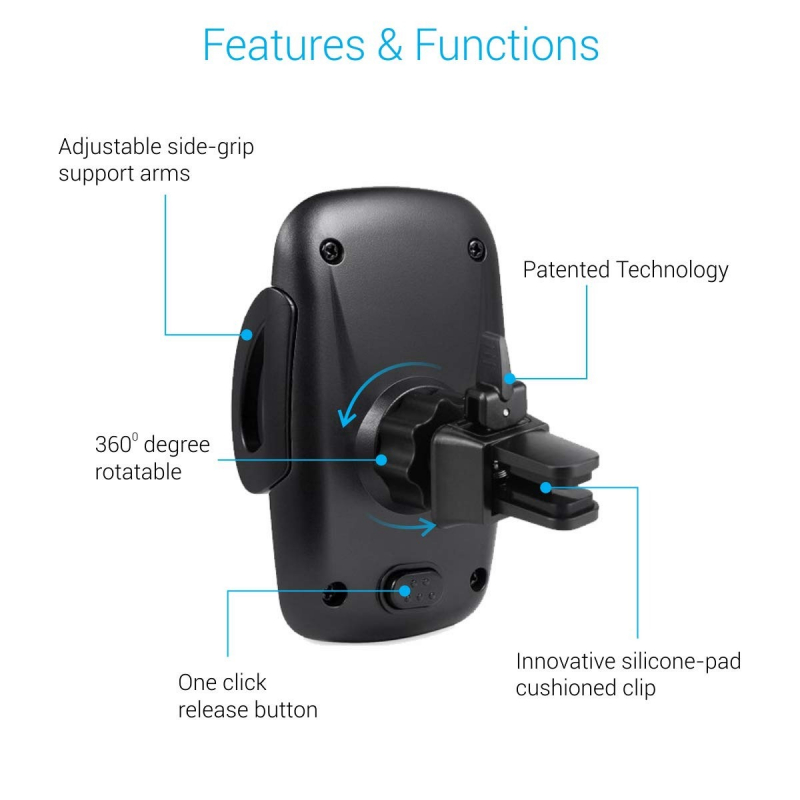 • CLAMP X: a patented Universal Mobile Holder with a cradle to hold any Smartphone up to 6 inches in the car AC Air Vent