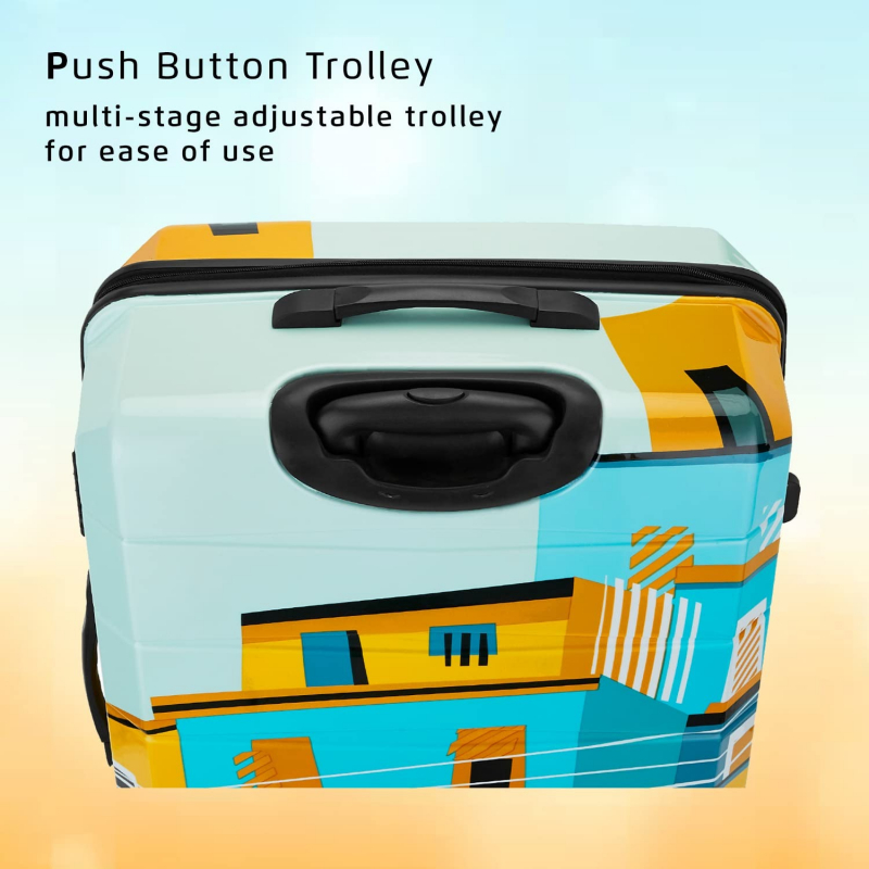 • FEATURES : Number of Wheels - 4, Number Lock, No of Compartments -2, Adjustable Trolley, Hard Case Printed Design Trolley