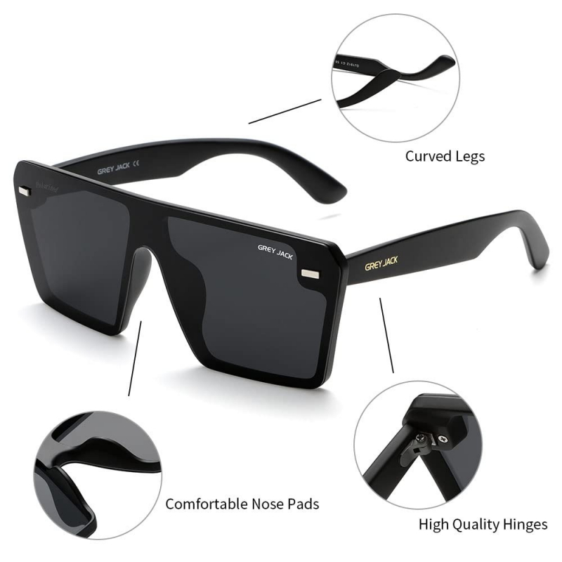 • 【FASHION ONE PIECE LENS DESIGN】Square stylish sunglasses are designed with unique one piece lenses and flat top. This special design protects your eyes in all directions, and at the same time shows your Unique fashion taste.