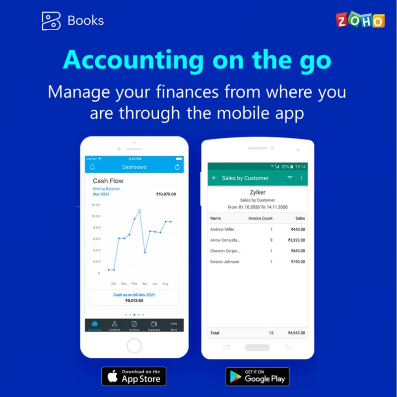 • Manage your business finances on the go, track your inventory and handle mundane accounting tasks effortlessly with Zoho books